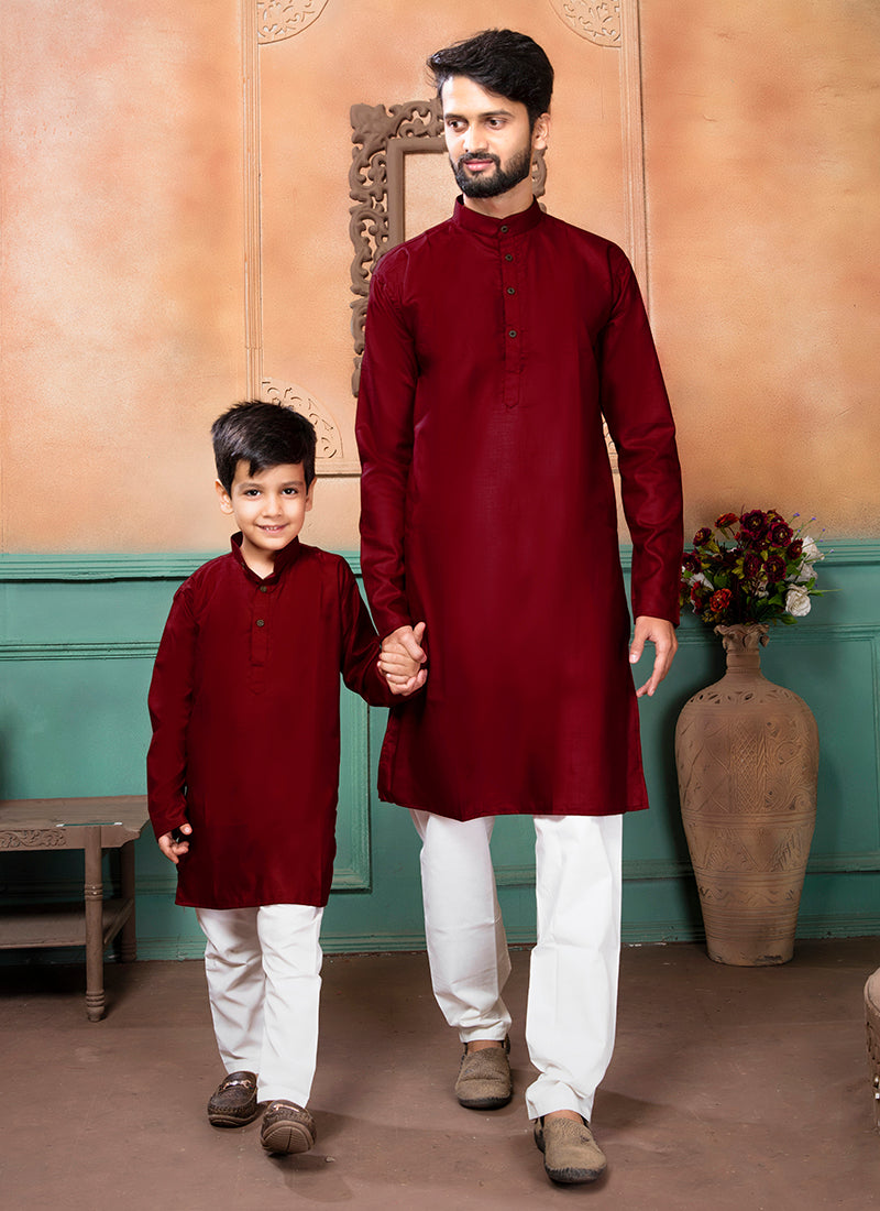 Maroon Pure Cotton Traditional Wear Plain Mens And Boys Kurta Kurta