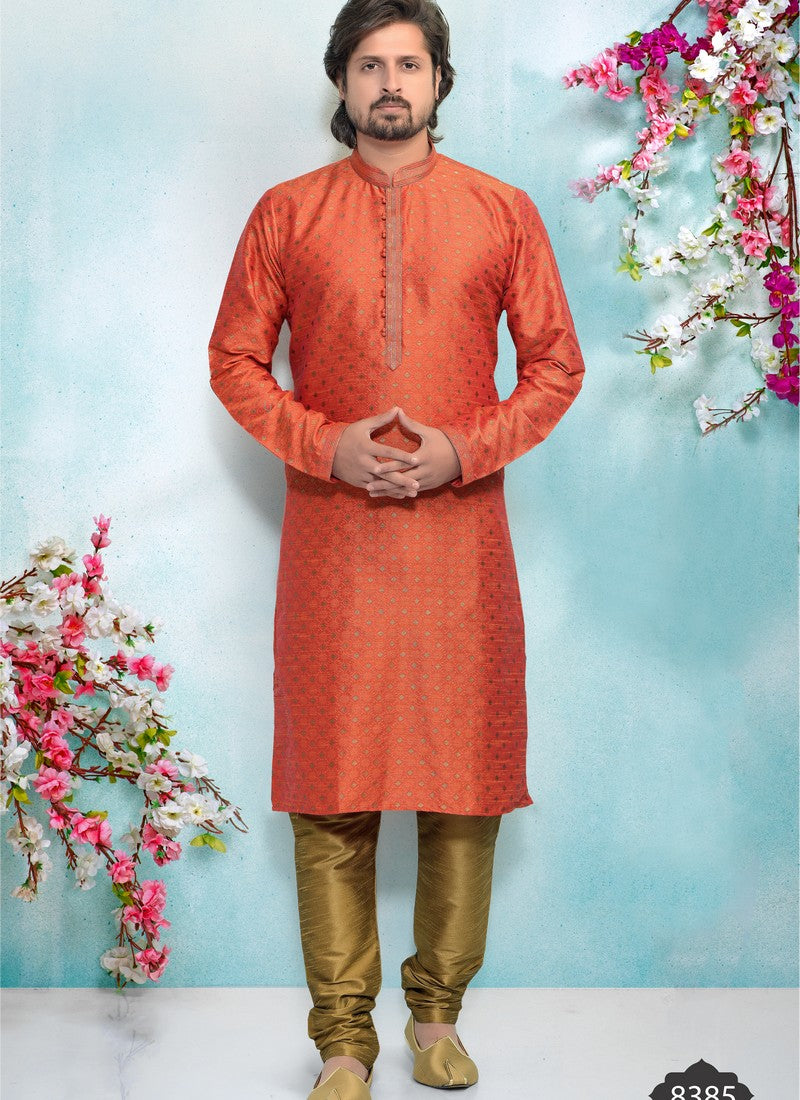 Orange Art Banarasi Silk Festival Wear Weaving Kurta Pajama