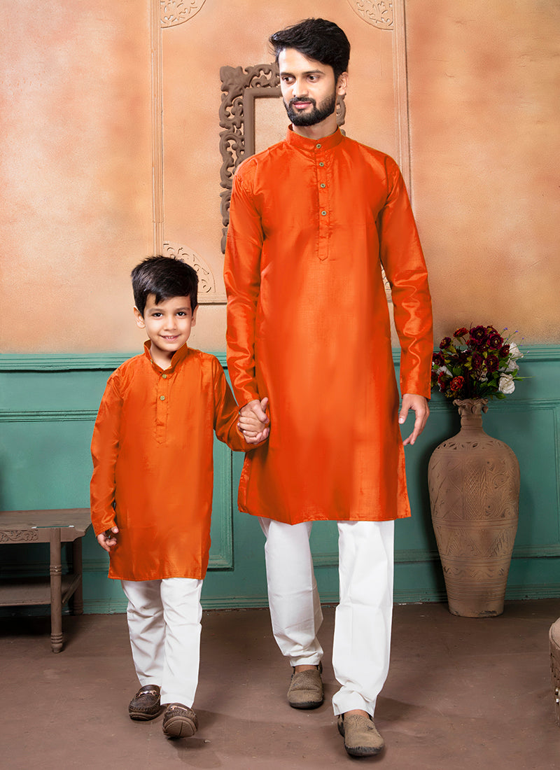 Orange Pure Cotton Traditional Wear Plain Mens And Boys Kurta Kurta