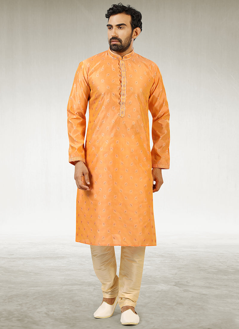 Dark peach Jaqurd silk brocade Party Wear Fancy Kurta Pajama