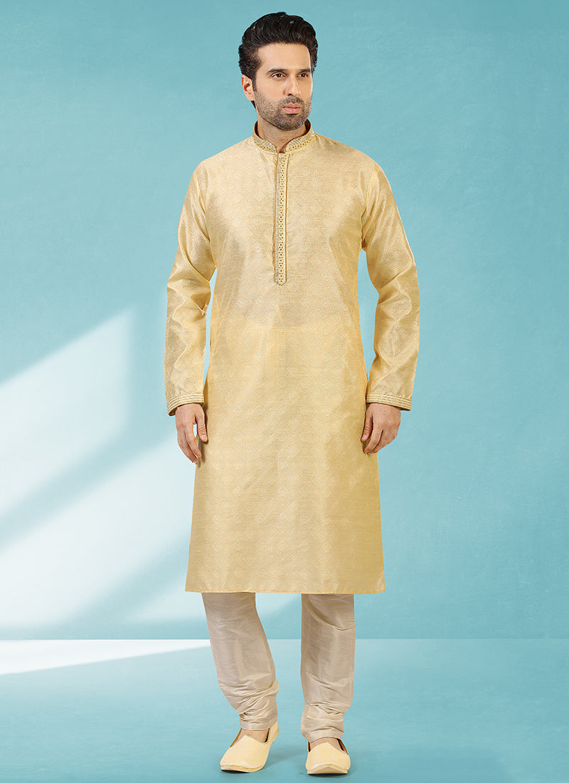 Gold Jaqurd silk brocade Party Wear Fancy Kurta Pajama