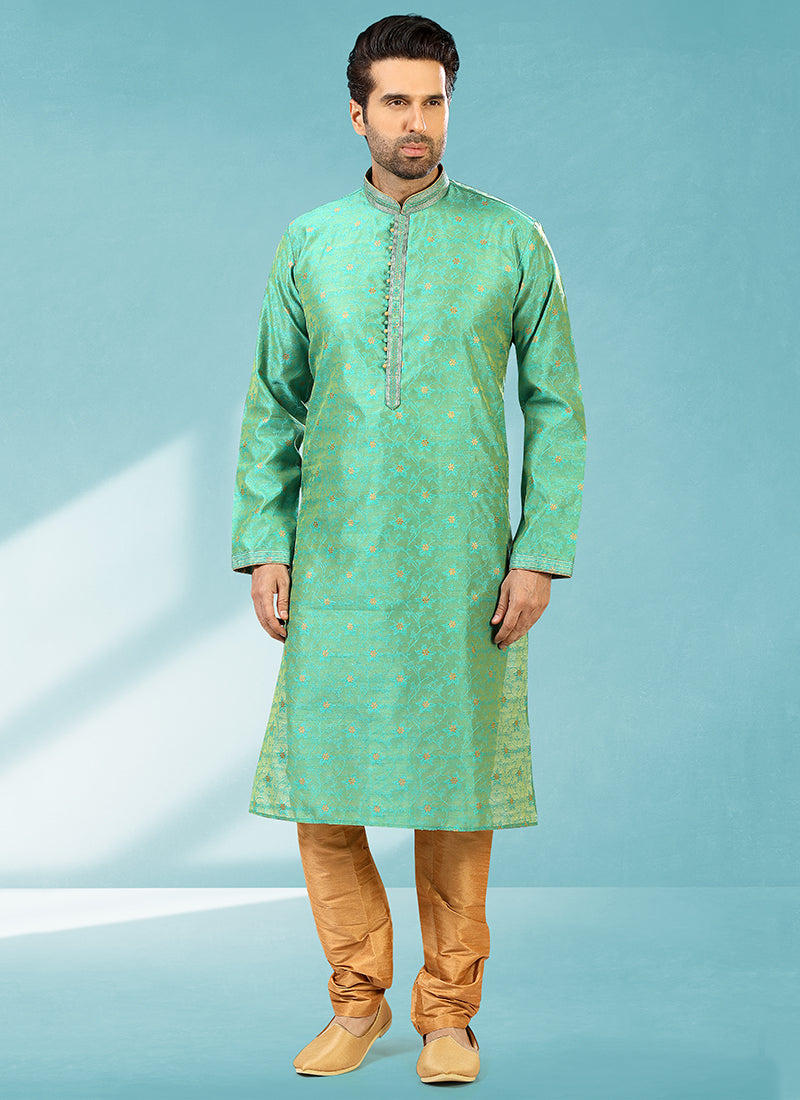 Green Jaqurd silk brocade Party Wear Fancy Kurta Pajama