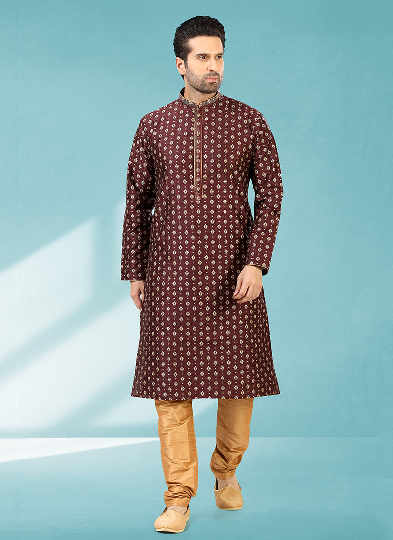 Rust Jaqurd silk brocade Party Wear Fancy Kurta Pajama