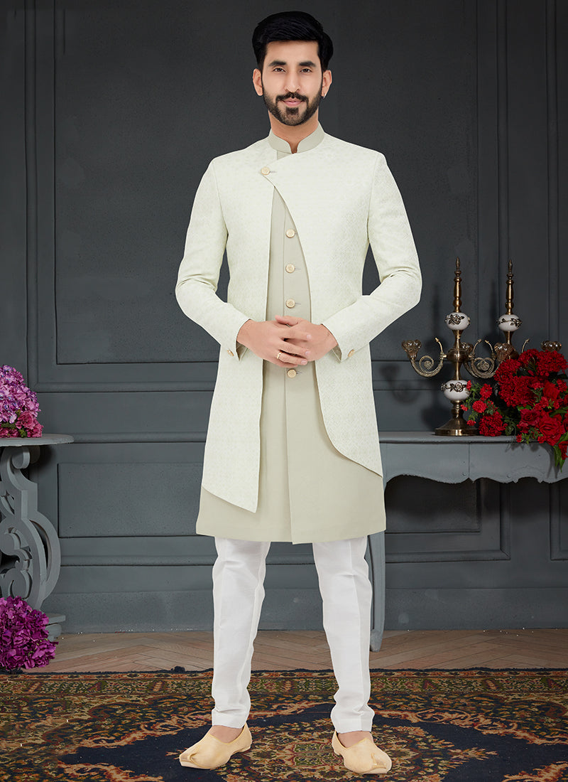 Cream White Jecquard Traditional Wear Weaving Italian Indo Western