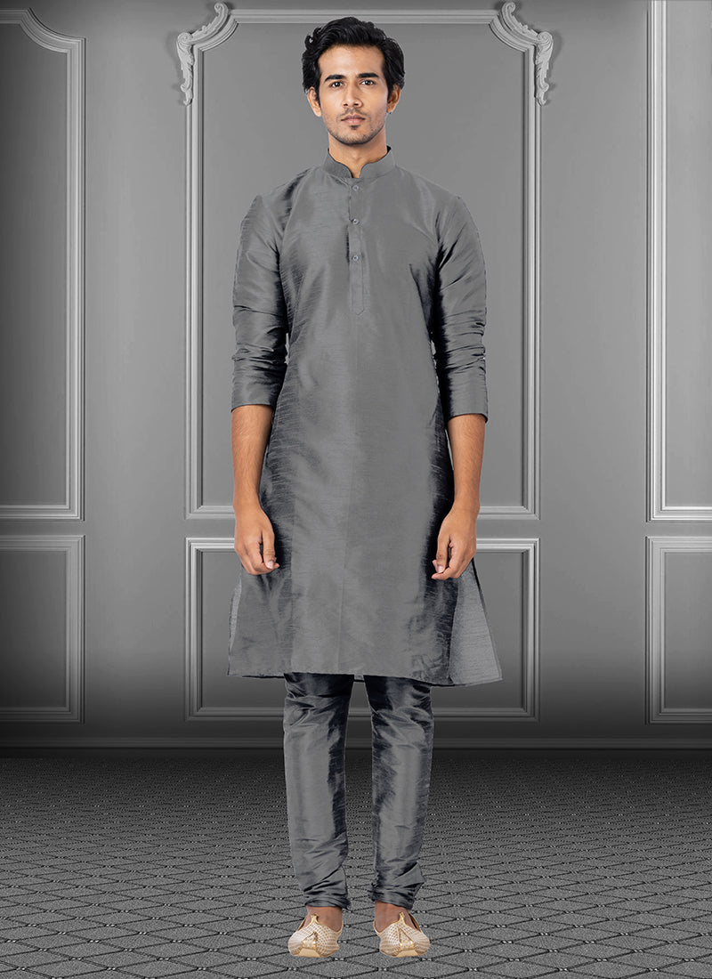 Grey Dhupion Raw Silk Festival Wear Weaving Kurta Pajama