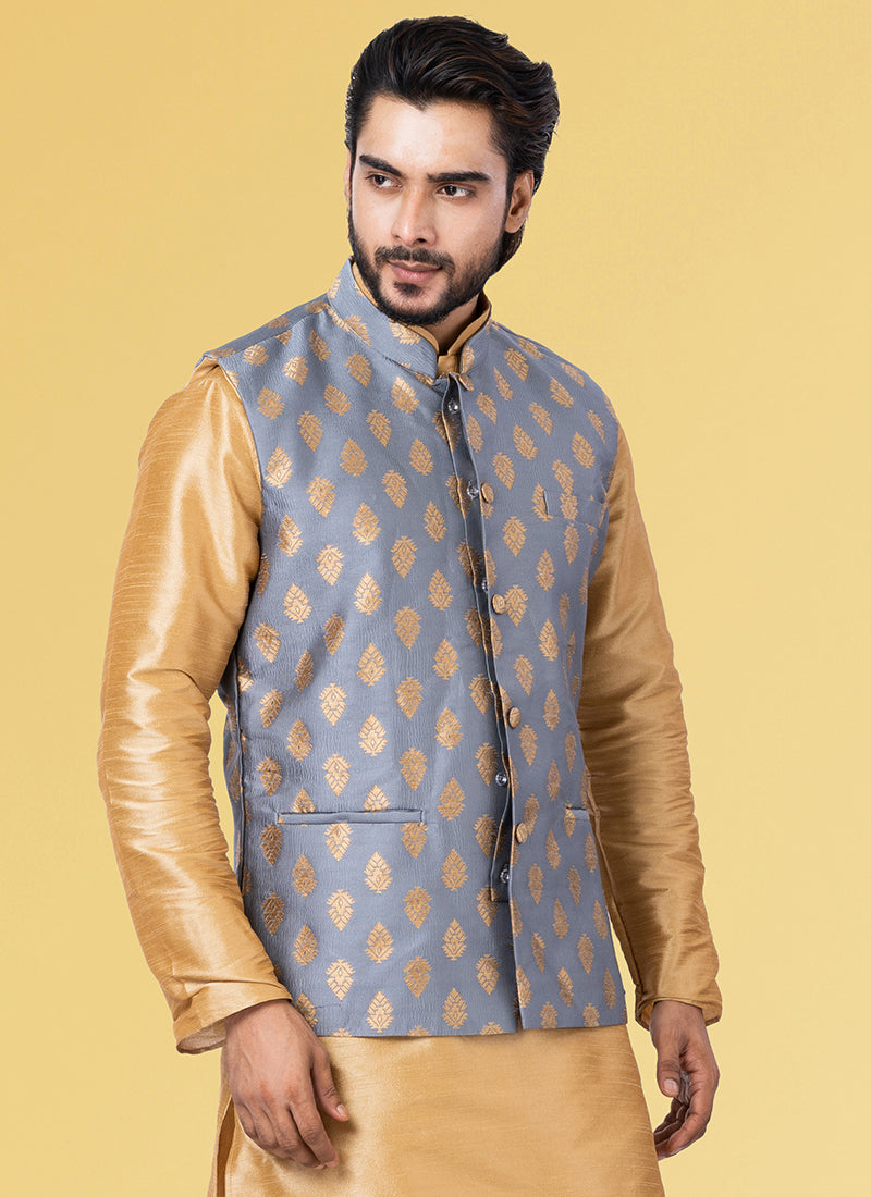 Grey Jacquard Festival Wear Weaving Kurta Pajama