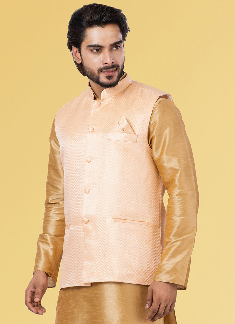 Peach Dimond Fabric Party Wear Weaving Waistcoat