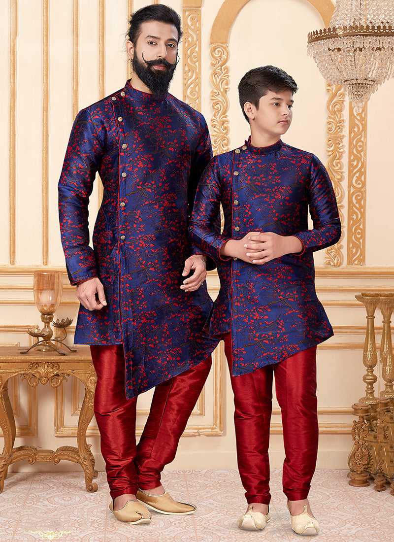 Jacquard Silk Navy Blue Wedding Wear Weaving Readymade Kurta Pajama