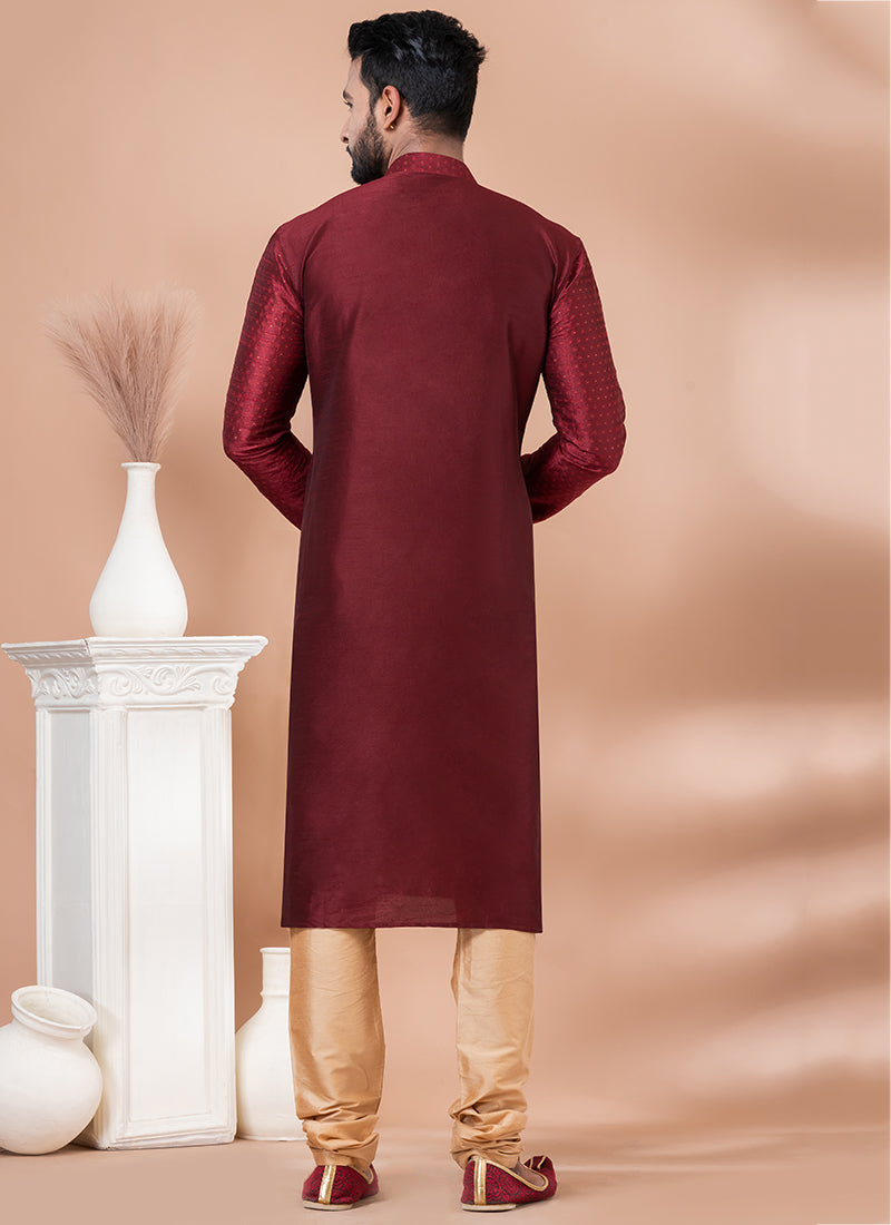 Ps Viscose Jacquard Maroon Traditional Wear Weaving Kurta Pajama