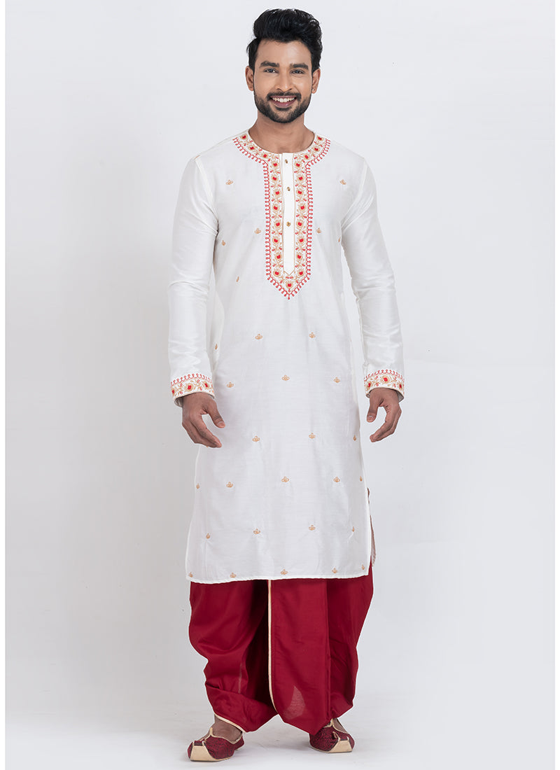 Viscose Ps White Festival Wear Thread Work Readymade Kurta With Dhoti