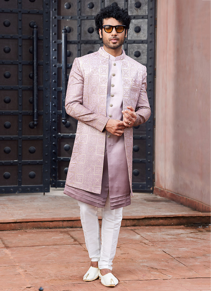 Product Speciality: Discover elegance and tradition with this beautifully crafted sherwani, perfect for weddings, festivals, and special occasions. Made from high-quality art silk, this ensemble features intricate thread work that reflects timeless style.