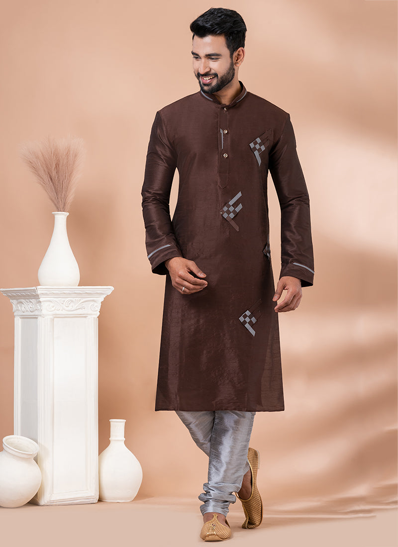 Product Speciality: Discover elegance and tradition with this beautifully crafted sherwani, perfect for weddings, festivals, and special occasions. Made from high-quality banarasi dhupion silk, this ensemble features intricate weaving that reflects timeless style.