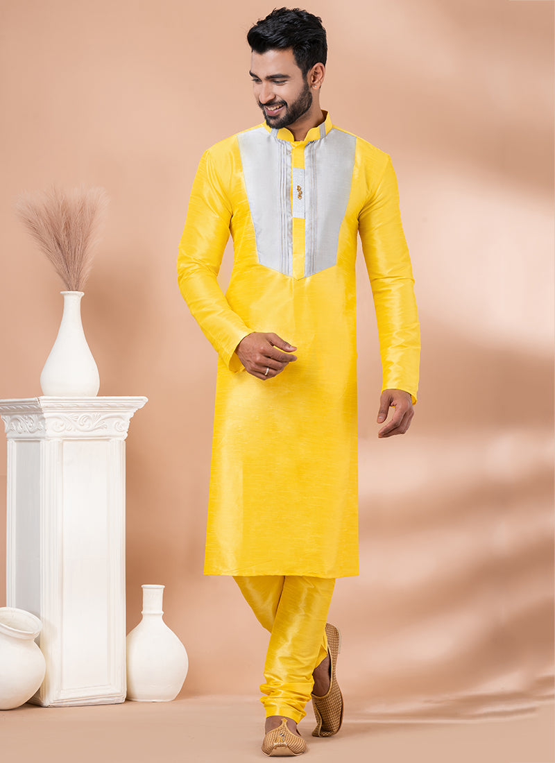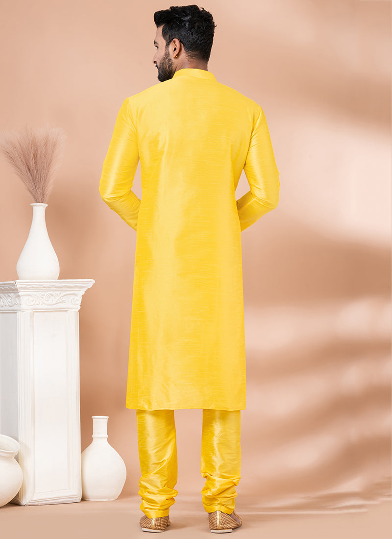 Product Speciality: Discover elegance and tradition with this beautifully crafted sherwani, perfect for weddings, festivals, and special occasions. Made from high-quality banarasi dhupion silk, this ensemble features intricate weaving that reflects timeless style.
