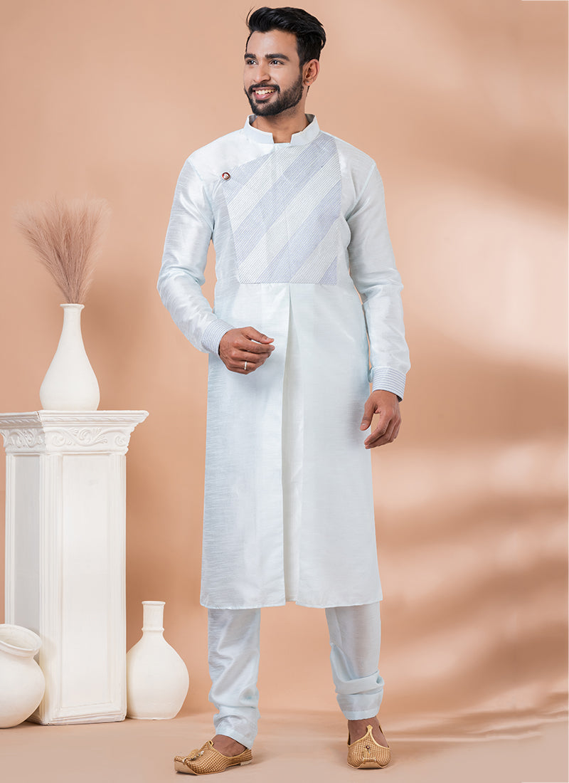 Product Speciality: Discover elegance and tradition with this beautifully crafted sherwani, perfect for weddings, festivals, and special occasions. Made from high-quality banarasi dhupion, this ensemble features intricate weaving that reflects timeless style.