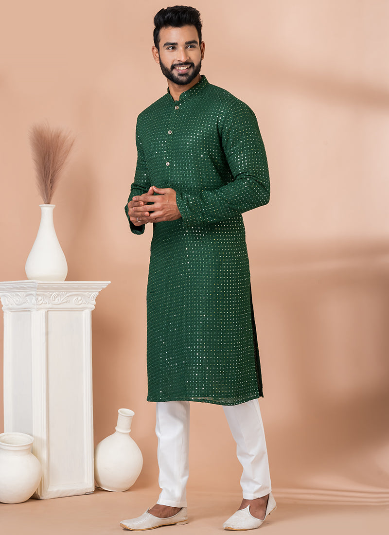 Viscose Green Festival Wear Embroidery Work Kurta Pajama