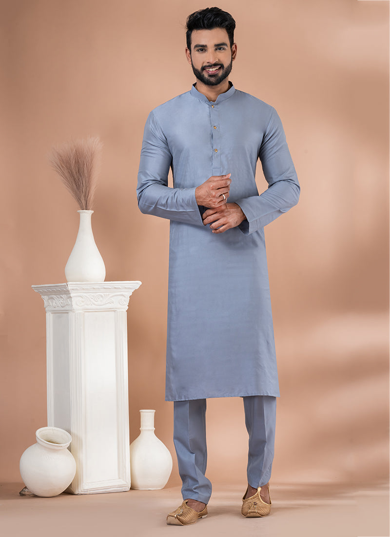 Viscose Grey Traditional Wear Plain Kurta Pajama