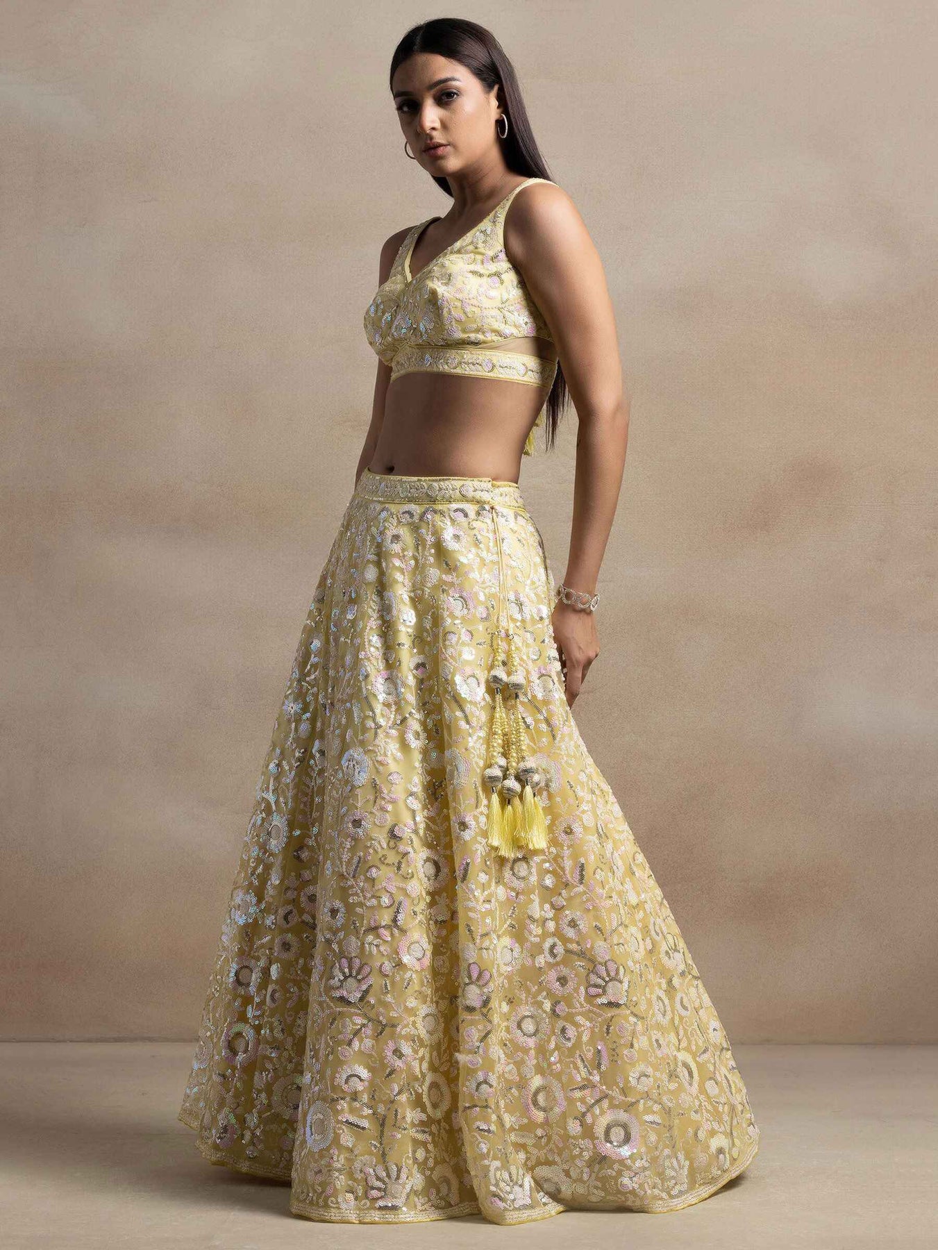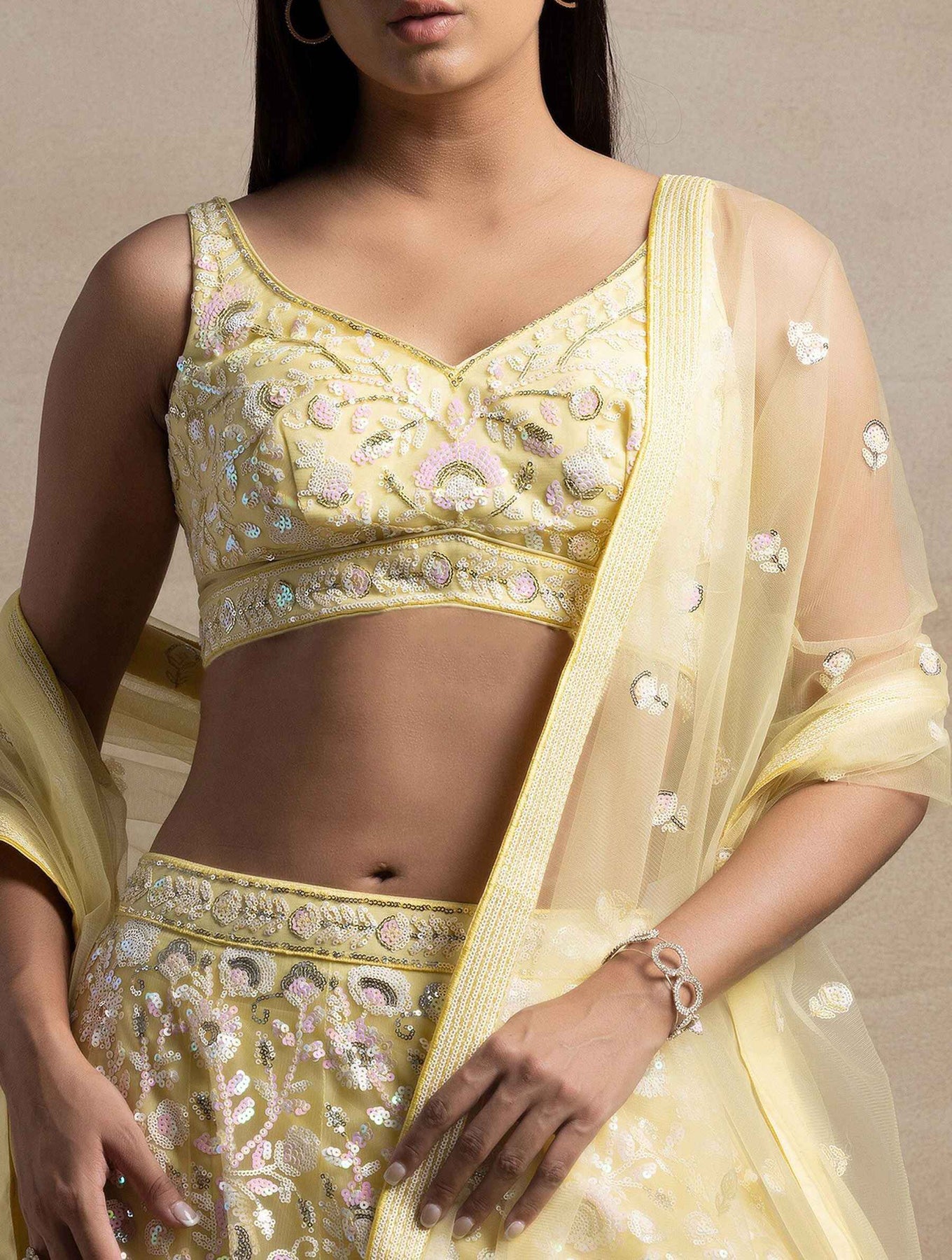 Yellow Sequins Net Haldi Wear Lehenga Choli With Dupatta